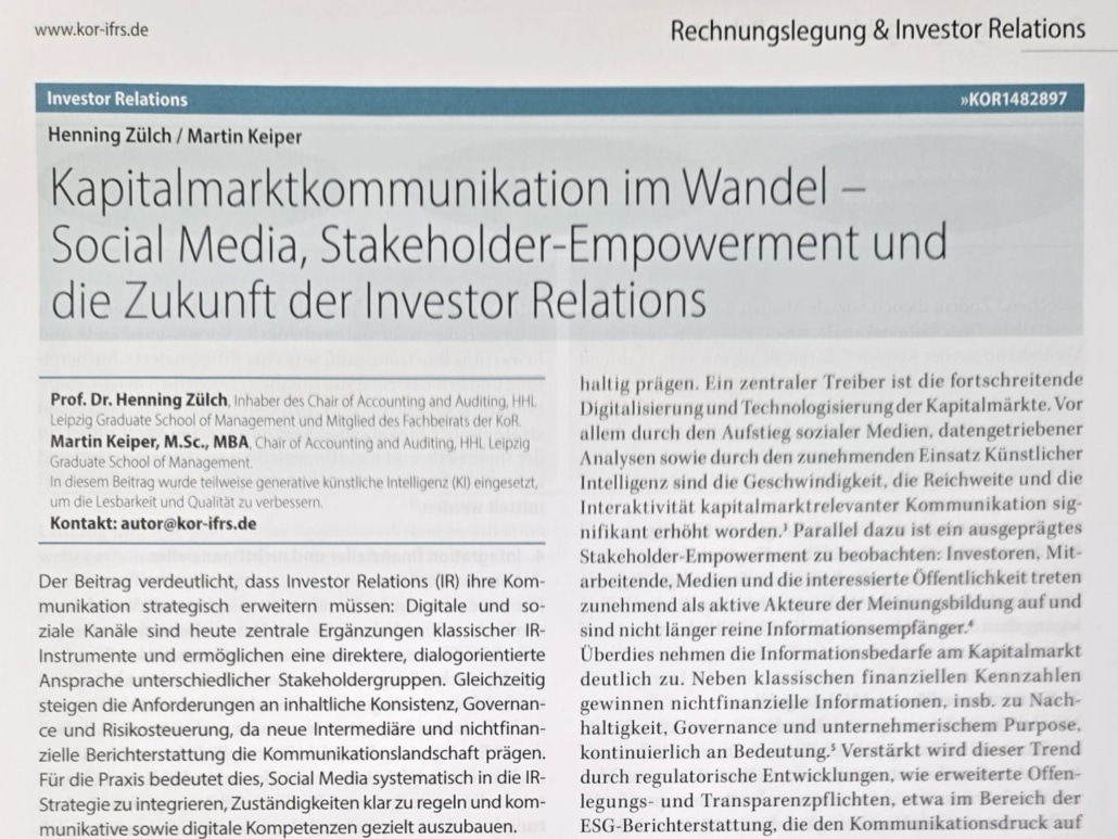 Der Beitrag verdeutlicht, dass Investor Relations (IR) ihre Kommunikation strategisch erweitern müssen: Digitale und soziale Kanäle sind heute zentrale Ergänzungen klassischer IR-Instrumente und ermöglichen eine direktere, dialogorientierte Ansprache unterschiedlicher Stakeholdergruppen. Gleichzeitig steigen die Anforderungen an inhaltliche Konsistenz, Governance und Risikosteuerung, da neue Intermediäre und nichtfinanzielle Berichterstattung die Kommunikationslandschaft prägen. Für die Praxis bedeutet dies, Social Media systematisch in die IR-Strategie zu integrieren, Zuständigkeiten klar zu regeln und kommunikative sowie digitale Kompetenzen gezielt auszubauen.